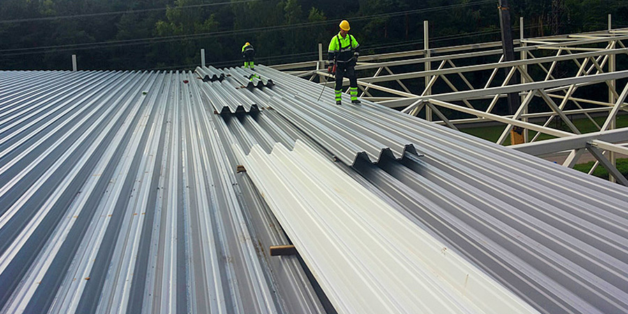 Установка металлочерепицы производится путем крепления листов кровли к каркасу здания с использованием специальных крепежных элементов.