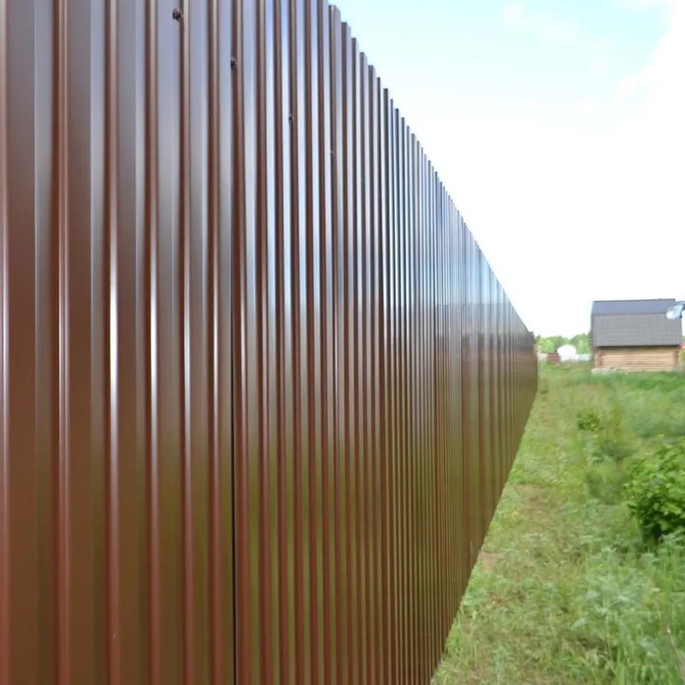 Одним из ключевых преимуществ является высокая коррозионная стойкость благодаря многослойному покрытию, что продлевает срок службы до 25 лет. Материал экономичен: низкая цена за квадратный метр сочетается с простотой установки, не требующей специального оборудования. Цвет RAL 8017 обеспечивает визуальную привлекательность, маскируя мелкие загрязнения и гармонируя с окружающей средой. Кроме того, профлист легок, что снижает нагрузку на фундамент и упрощает логистику. Экологичность и отсутствие необходимости в частом обслуживании делают его выгодным выбором для бюджетных проектов.